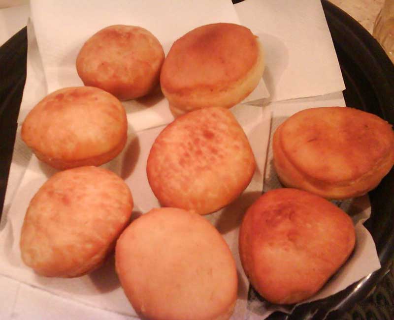 Prăjiți gogosile în ulei. Puneți-le pe un prosop de hârtie. Când s-au răcit, umpleți gogoșile cu gem folosind un pos.