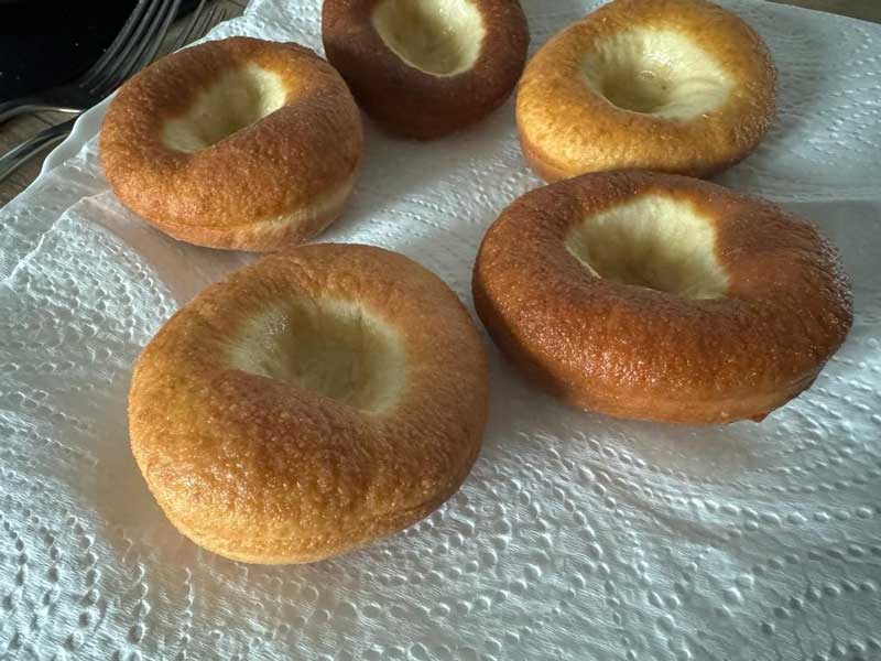 Puneți gogoșile prăjite pe un prosop de hârtie pentru a elimina excesul de ulei.