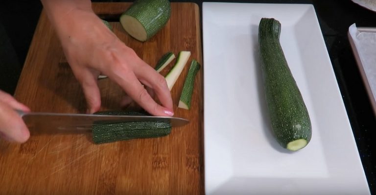 Cu ajutorul unui cuțit, tăiem dovleceii pai.