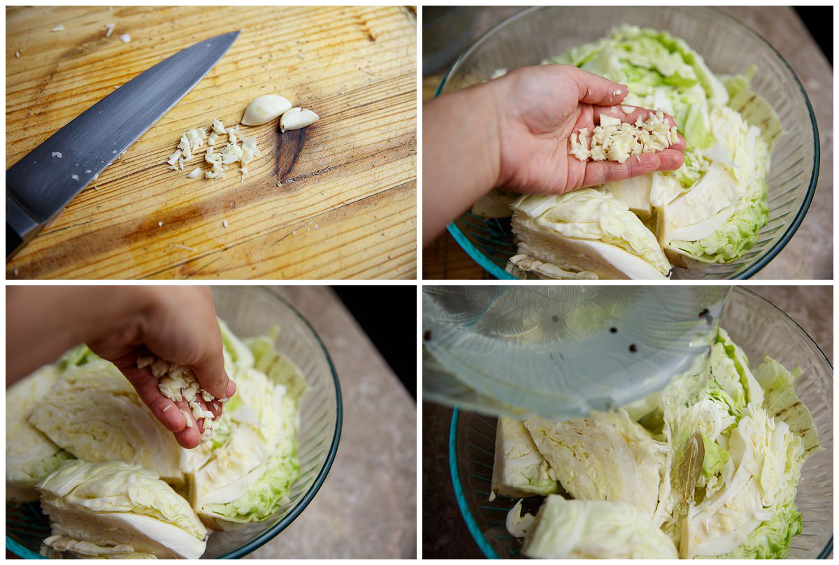 Verzele se așază în butoi numai cu cotorul în sus. Se-apasă bine, se pune un grătar de lemn deasupra, se presează cu două-trei pietre de râu sau de granit și se acoperă cu un șervet mare, curat. Se lasă așa… două zile.