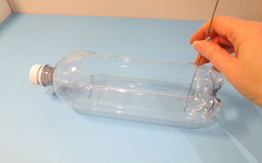 3.Pe partea laterală a sticlei tăiem un dreptunghi, făcând o tăietură nu foarte adâncă.