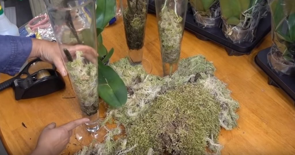 Pentru a realiza înmulțirea fără fitohormoni, vom folosi apă, vaze înalte sau sticle de plastic, tije florale de orhidee, mușchi Hypnum sau mușchi Sphagnum, scoici, un pulverizator și peliculă cu mici perforații.