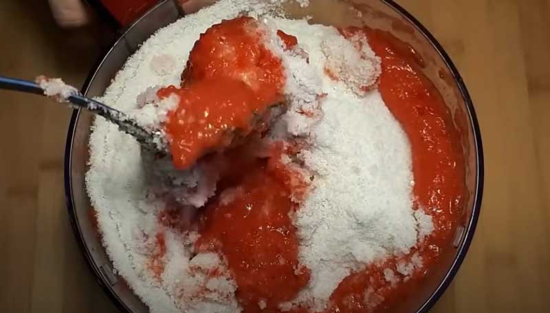 Tăiați roșiile în bucăți și mărunțiți-le cu ajutorul unui blender.