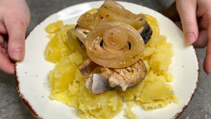Peștele arată super apetisant! Și ceapa, de altfel, iese și ea delicioasă! Cu cartofi fierti, este o adevarata capodopera culinara!