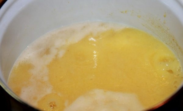1. Pentru început, amestecăm crupele de porumb cu apă.
