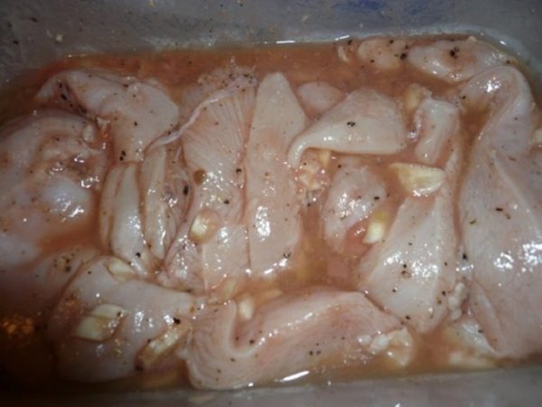 2. Marinada obținută se toarnă peste carne și se lasă la marinat peste noapte la frigider.