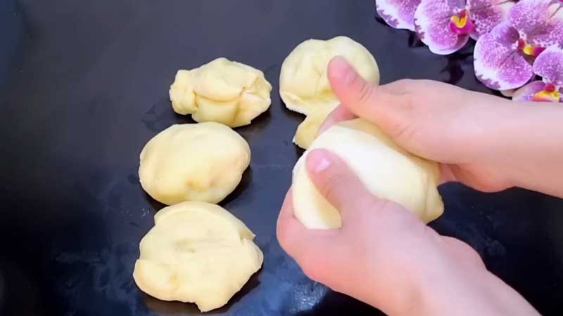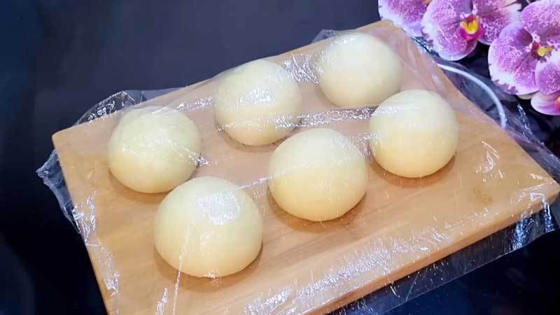 Împărțiți aluatul în părți egale și rotunjite. Se lasă din nou sub film 10-15 minute.
