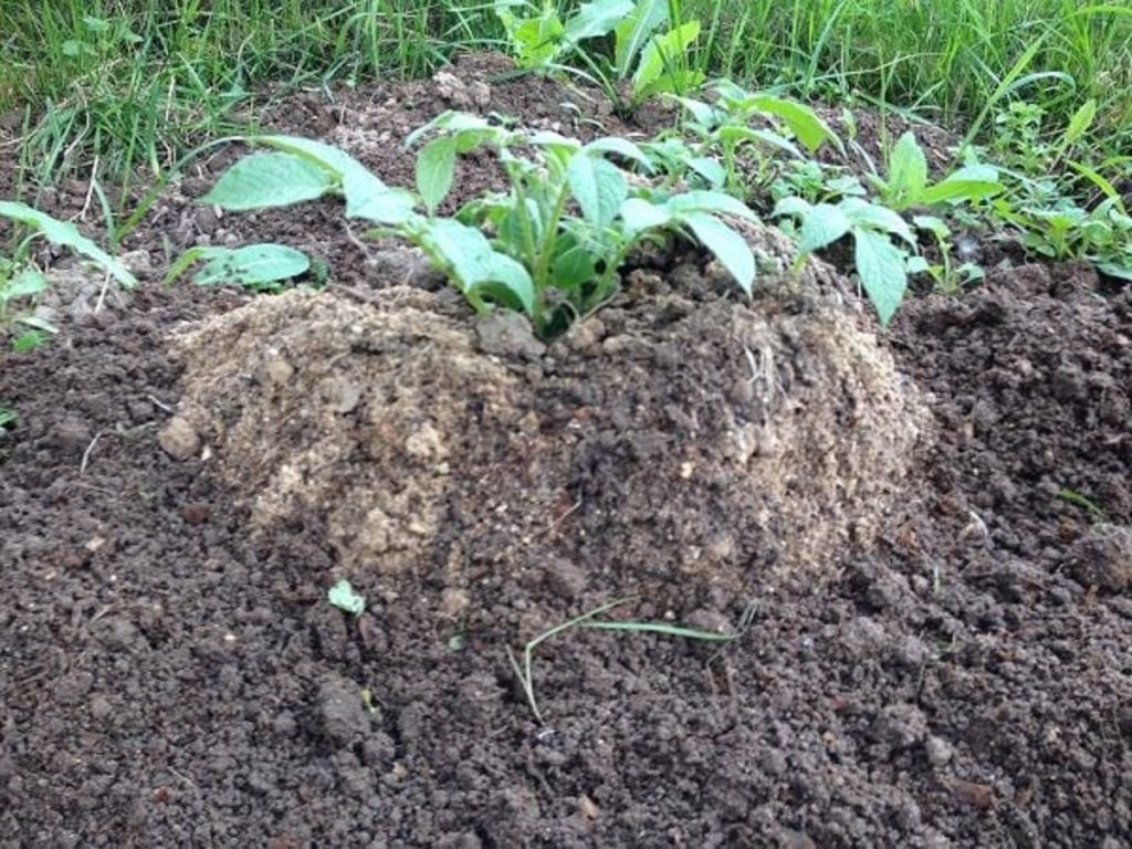 7.Când tufa de cartof ajunge la o înălțime de 20 de cm, o îngropați iar, lăsând doar lăstarii de sus la suprafață.
