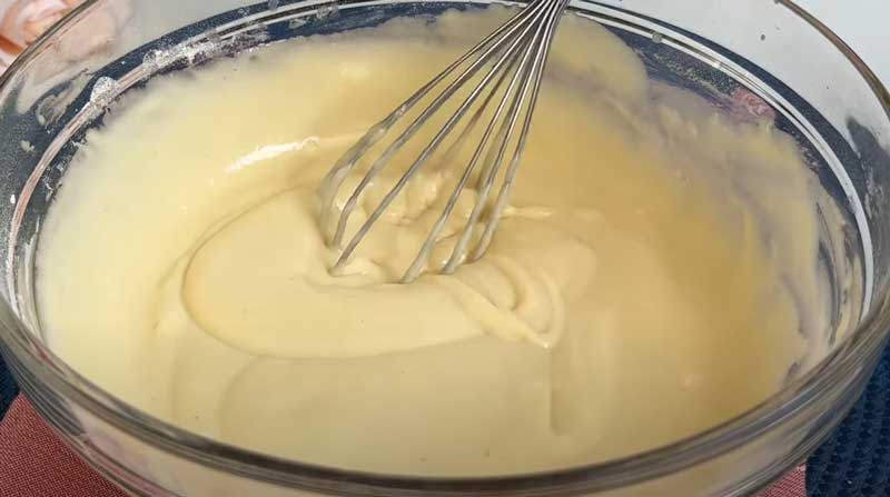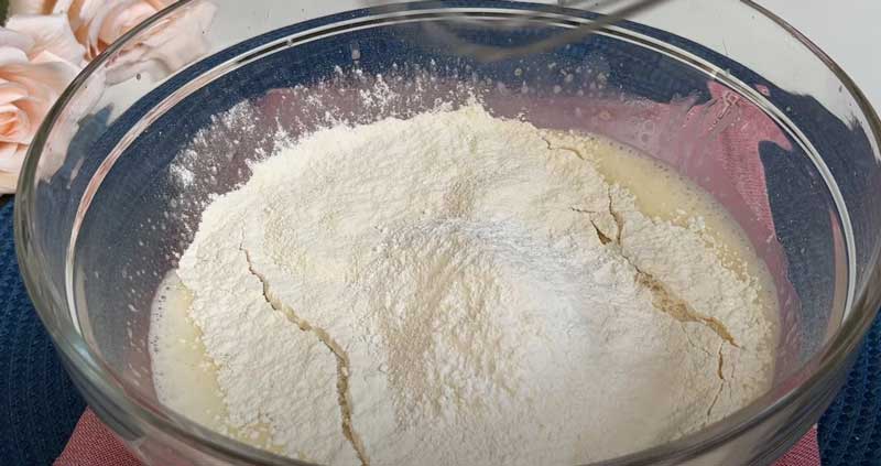 Turnați laptele și continuați să amestecați.