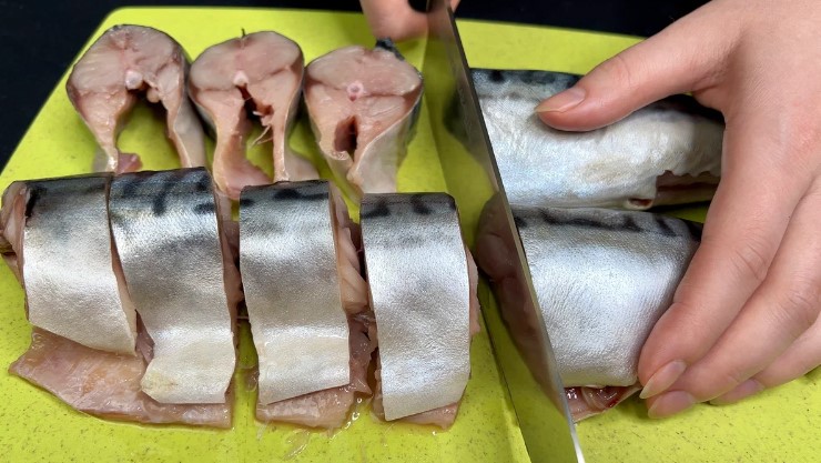 Spălați bine macroul, curățați-l pe interior și tăiați-l în porții felii mici.