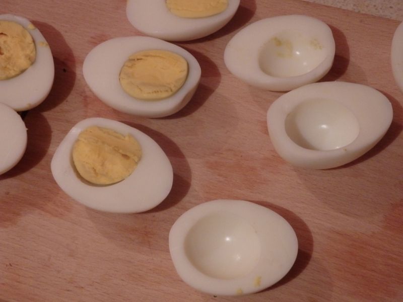 Taiem ouale fierte in doua. Le scoatem galbenusurile cu grija.