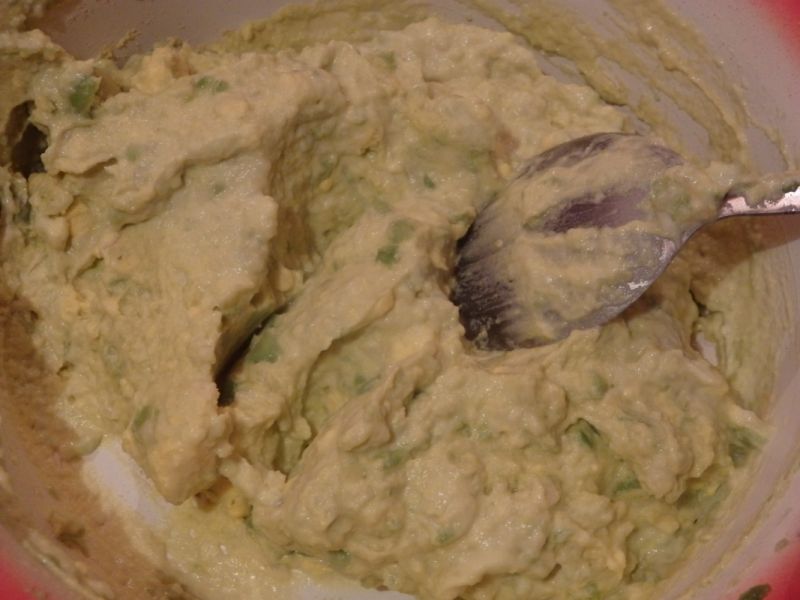 Punem galbenusurile in piureul de avocado. Adaugam maioneza si amestecam totul cu o furculita, astfel incat ingredientele sa se combine.