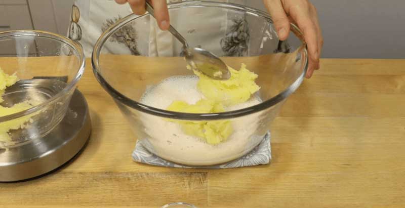 La prima vedere, va părea că este prea multă făină. Dar aluatul de cartofi trebuie să fie consistent, deoarece piureul va da umezeală aluatului în timpul frământării.
