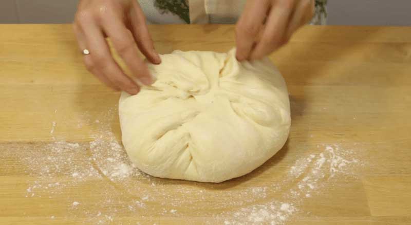 Acum formez o paine rotunda, sau ovala, după dorință. Adun marginile si le presez cu grija in centru.