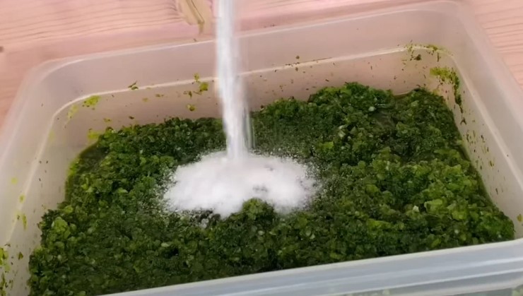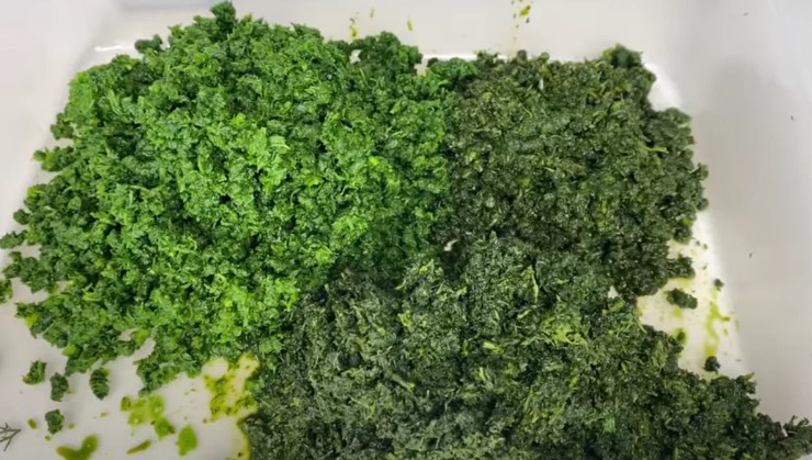 Spălați verdeața și treceți-o printr-o mașină de tocat carne.