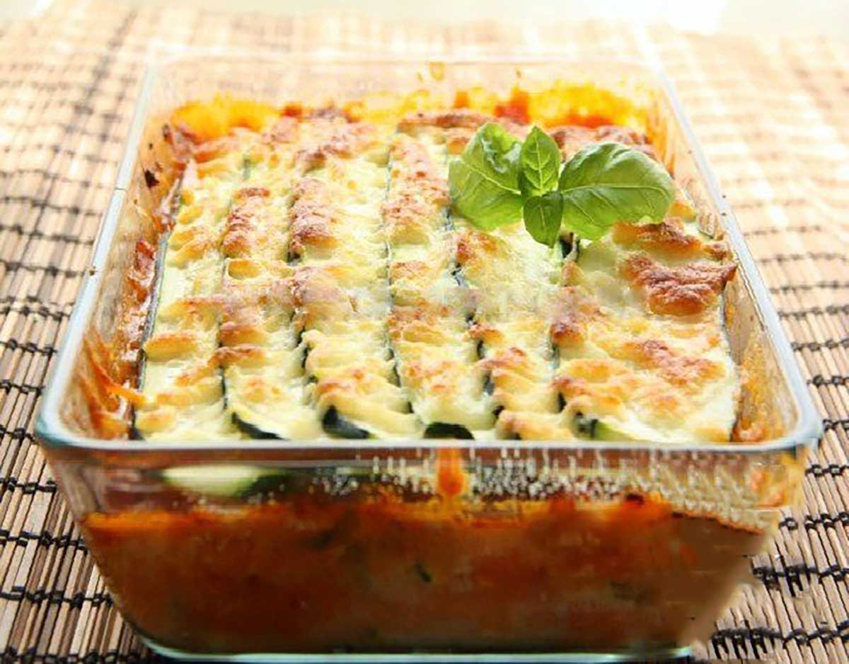 - Ultimul strat trebuie sa fie unul de dovlecei. Coacem lasagna la temperatura de 180 de grade, timp de 25-30 de minute.