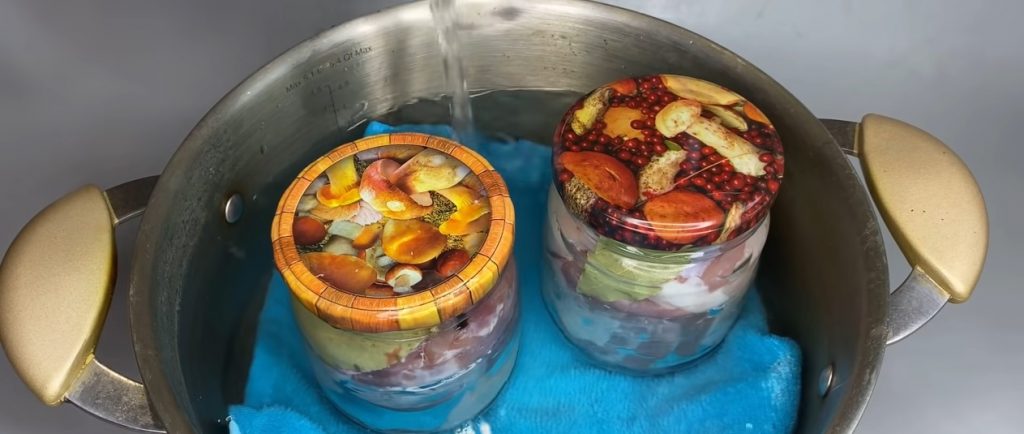4. Turnăm atent marinada clocotită în borcane, aproape plin. Acoperim borcanele, fără a sigila, cu capace (permitem aerului să iasă și să intre din borcan).