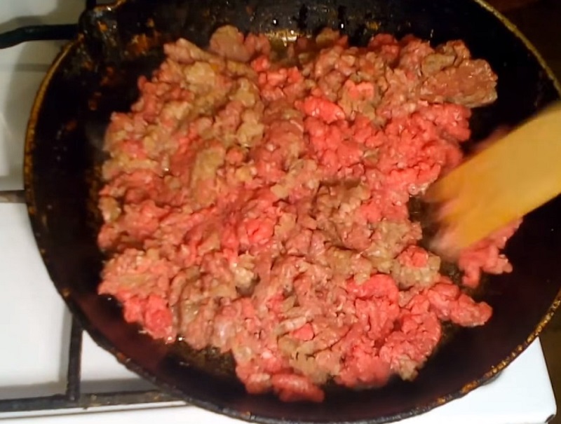 Amestecul de carne se prăjește pe o tigaie, cu un pic de ulei, până când carnea este gata.