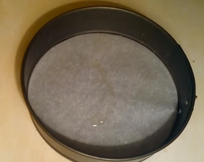 O să aveți nevoie de o formă rotundă de copt, cu margini detașabile, tapetată în prealabil cu hârtie de copt și unsă cu puțin ulei.