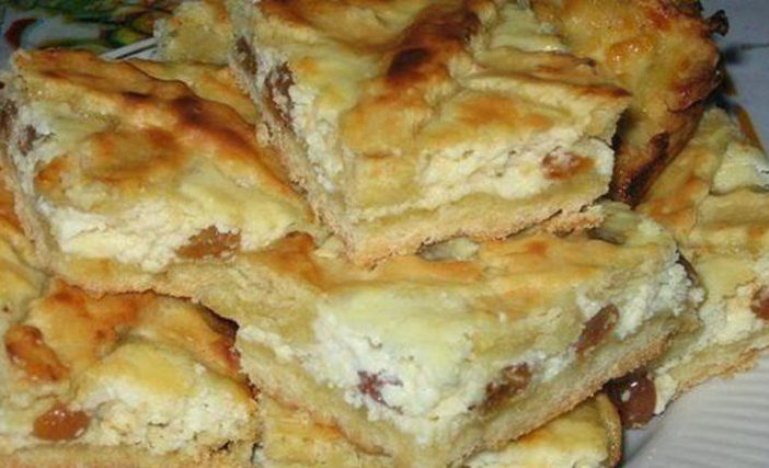 - Într-un bol, amestecați 500 de grame de brânză de vaci, 200 de grame de zahăr, amestecați bine, adăugați 100 de grame de stafide, vanilie (puteți folosi zahărul vanilinat) și se amestecă bine.