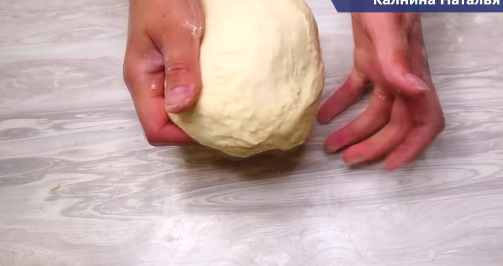 Amestecăm făina cernută cu bicarbonatul. Separat, amestecăm chefirul cu uleiul, sarea și zahărul. Treptat încorporăm amestecul uscat în cel lichid, frământând un aluat elastic și omogen. Dacă aluatul se lipește de mâini, mai adăugăm 20-30 g făină. Învelim aluatul în folie alimentară și îl punem deoparte.