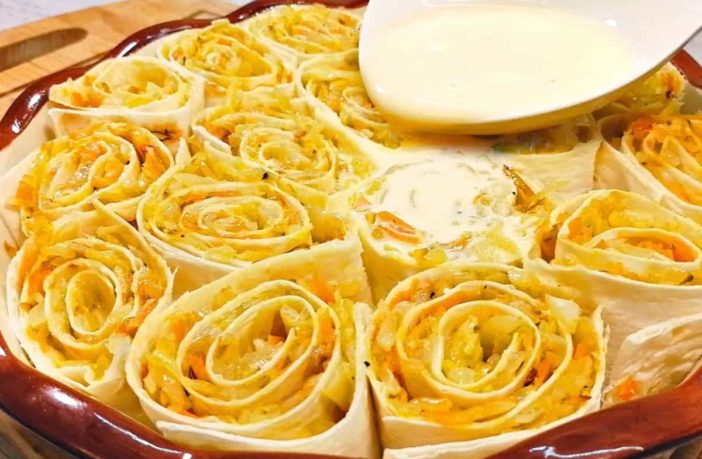 - Formăm o ruladă, o tăiem felii și o repartizăm uniform pe o forma de copt tapetată cu unt.
