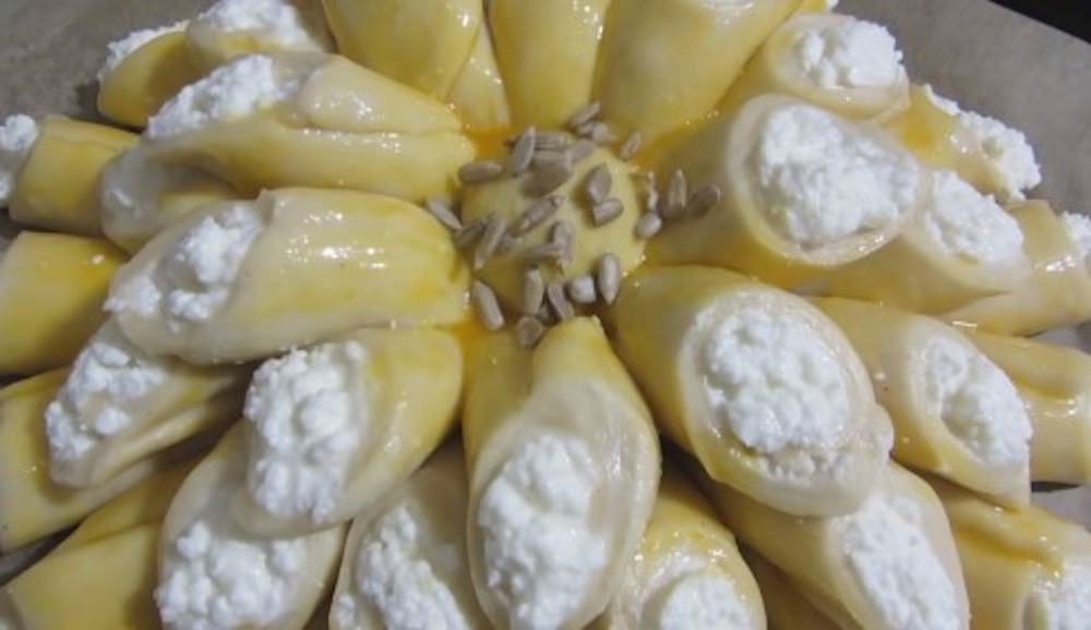 Placinta floare cu branza este potrivita pentru o masa festiva. Dca vrei sa-ti impresionezi oaspetii, atunci incearca aceasta reteta. Petalele „florii” sunt umplute cu branza de vaci. Este usor sa-i dai placintei un aspect deosebit. Trebuie doar sa urmezi instructiunile de mai jos.