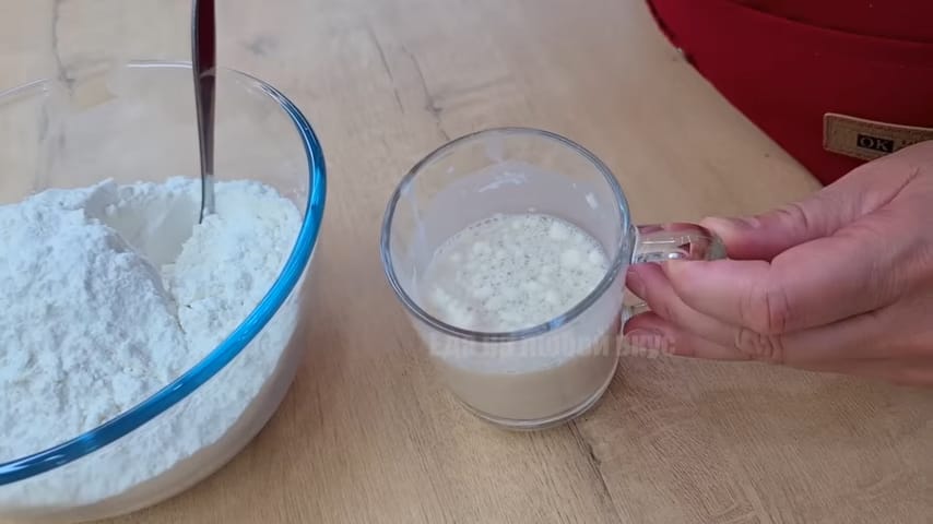 În apă călduță, amestecăm zahărul și drojdia, până când acestea se dizolvă integral… Adăugăm apoi 10 grame de făină și omogenizăm bine…