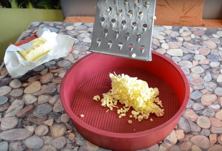 La final, adăugăm unt dat prin răzătoare și coacem la temperatura de 180 de grade, până se rumenește frumos.