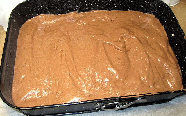 Adăugăm treptat zahărul peste albușurile bătute, reducem viteza și încorporăm gălbenușurile. Cernem făina, cacaua și praful de copt, amestecăm ușor, turnăm compoziția în tavă. Punem în cuptorul preîncălzit la 180°C, căldură sus-jos, fără ventilație, și coacem aproximativ 25 de minute.