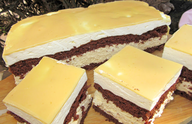 Prăjitura se pune la frigider, ideal peste noapte, pentru a se răci complet și e gata, se taie frumos, arată elegant. O recomand cu drag și vă doresc poftă bună!