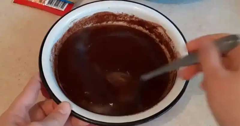 Tăiați ciocolata și adăugați-o în unt, puneți-o pe baie de apă și topiți-o, lăsați-o să se răcească la temperatura camerei.