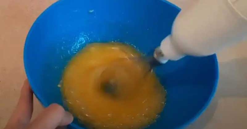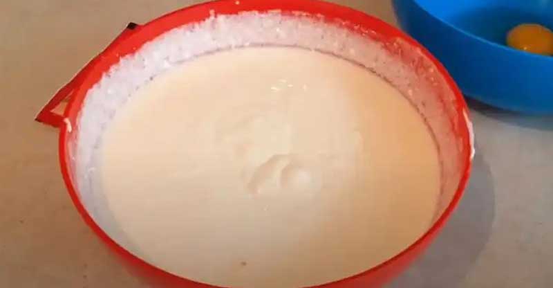 Adaug ouale, zaharul in branza si bat cu un blender. Adaug praful de budinca sau amidon, bat din nou cu un blender.