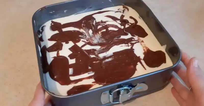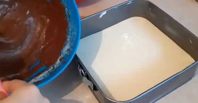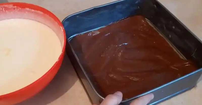 Deasupra am pus jumatate din compozitia de branza. Apoi din nou ciocolată și din nou compozitie de brânză.