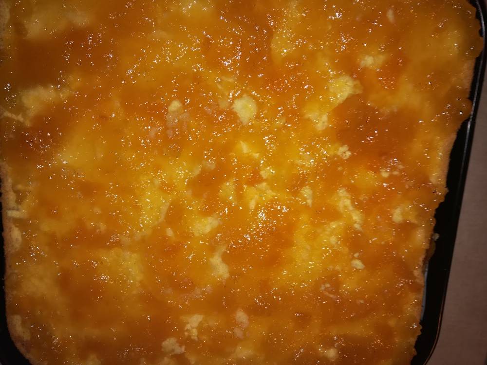 Acopera cu cel de-al doilea blat. Unge blatul cu gem de piersici.