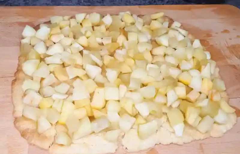 Coacem al doilea strat, din nou încălzim merele și le întindem deasupra.