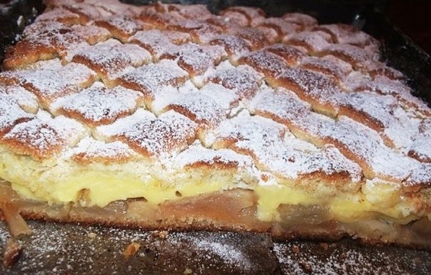 Un desert simplu, dar incredibil de gustos! Textura fragedă a aluatului se îmbină perfect cu cremozitatea budincii de vanilie și prospețimea merelor, creând un echilibru perfect de arome. Se servește rece, pudrată cu zahăr sau alături de o cupă de înghețată de vanilie.