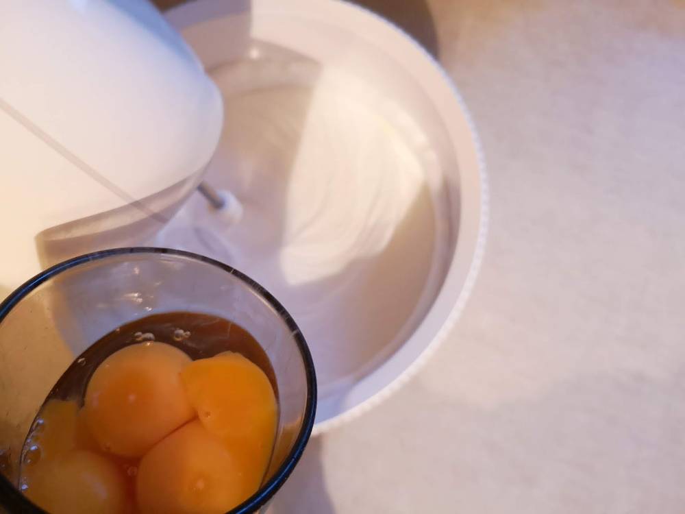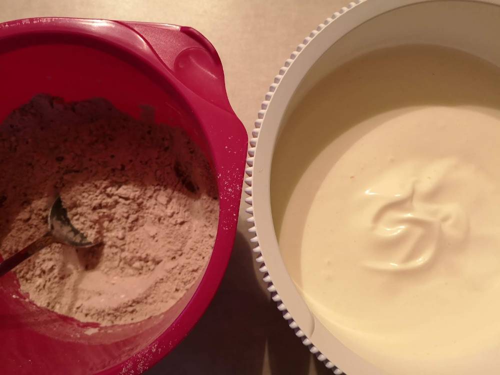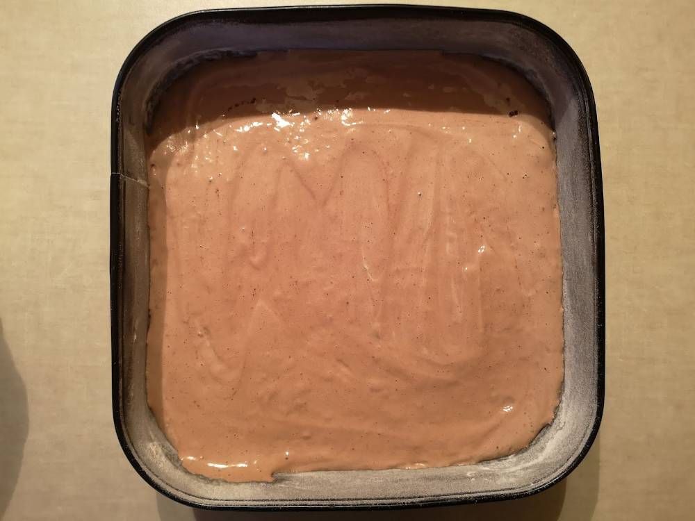 Dizolvam jeleul de portocale intr-un pahar cu apa fierbinte si-l lasam apoi sa se raceasca. Cat timp jeleul se raceste, pregatim blatul.Separam albusurile de galbenusuri. Batem albusurile cu un mixer pana obtinem o spuma ferma. Adaugam treptat zaharul si galbenusurile.Intr-un bol, amestecam cele 2 tipuri de faina cu praful de copt si cacaoa. Trunam faina in bolul cu oua si amestecam bine cu o spatula sau o lingura.Turnam aluatul obtinut intr-o tava patrata (24 x 24 cm) unsa cu unt si presarata cu faina. Coacem aluatul timp de aproximativ 30 de minute la o temperatura de 180 grade.Dupa ce blatul s-a copt, il scoatem din cuptor si-l lasam sa se raceasca, apoi il taiem in doua, pe orizontala. Punem un blat inapoi in tava de tort.