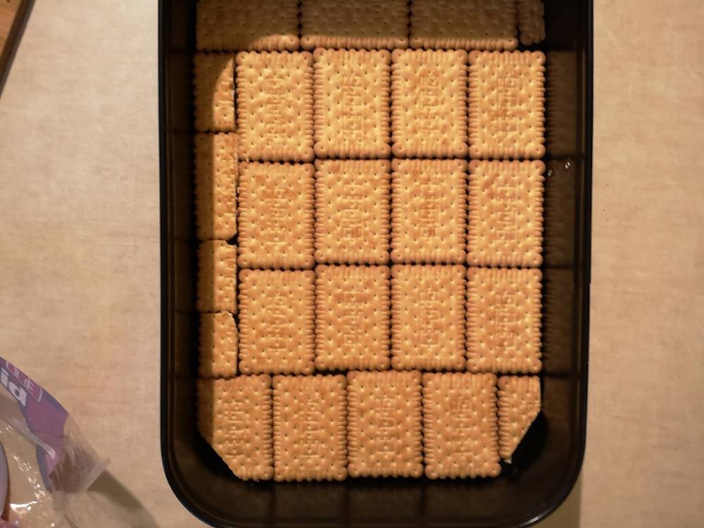 - 500 gr biscuiti simpli, 2 galbenusuri de ou