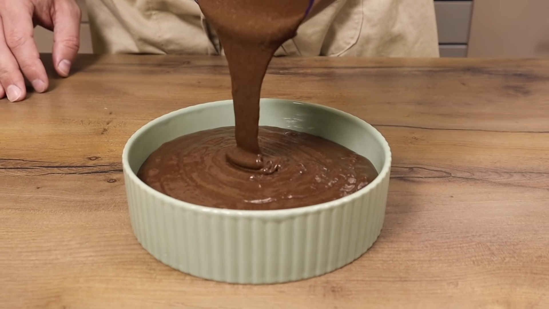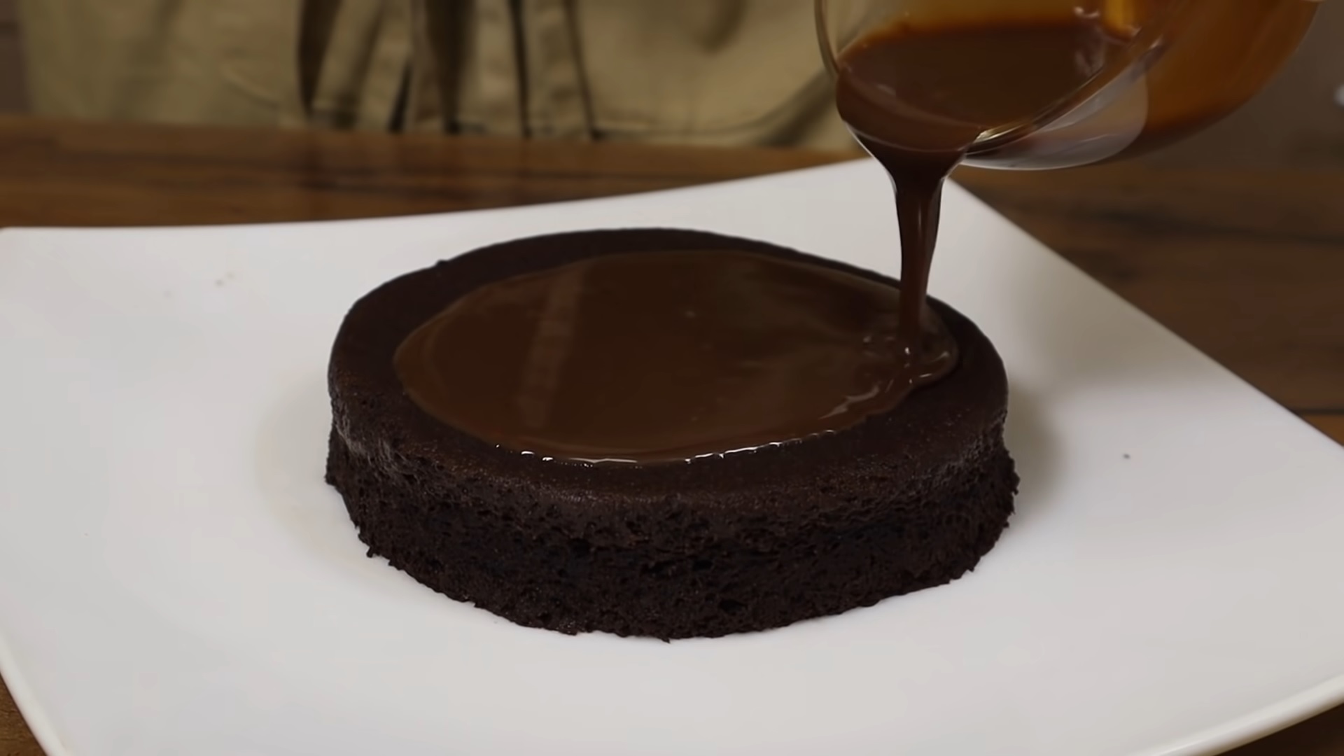 Transferăm compoziția într-un vas cu diametrul de 12 cm și dăm la cuptorul cu microunde pentru 5-7 minute. După 5-7 minute, scoatem vasul din cuptorul cu microunde și turnăm glazura deasupra desertului.