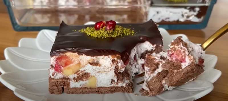 Cum să faci prăjitura cu biscuiți și fructe în tavă?