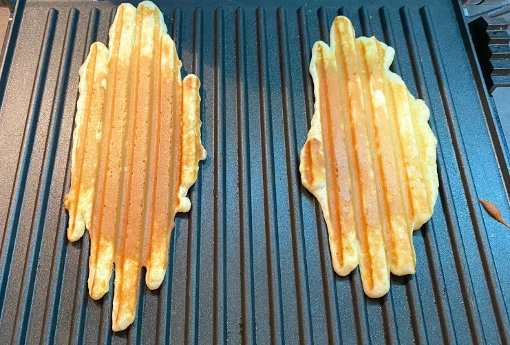 Am incalzit gratarul electric, am intins aluatul cu o lingura, l-am inchis cu panoul de sus si le-am copt.