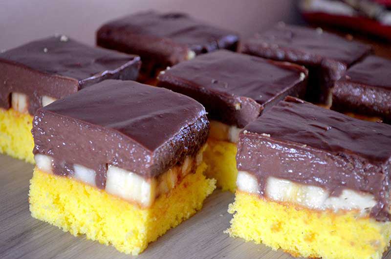 Această rețetă de prăjitură „Ispită cu ciocolată și banane” îmbină un blat pufos, cremă de ciocolată și felii de banane, transformându-se într-un desert irezistibil. Ideal de servit rece, dar la fel de bun imediat ce crema s-a întărit puțin.