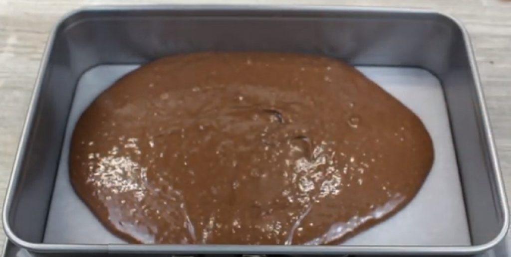 2. Adăugăm uleiul, laptele, făina, praful de copt, pudra de cacao, miezul de nucă și amestecăm foarte bine până la omogenizare.