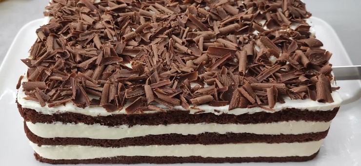 Prajitura se pune la frigider pentru minim 4 ore dupa care se orneaza cu ciocolata rasă sau dupa dorinta.