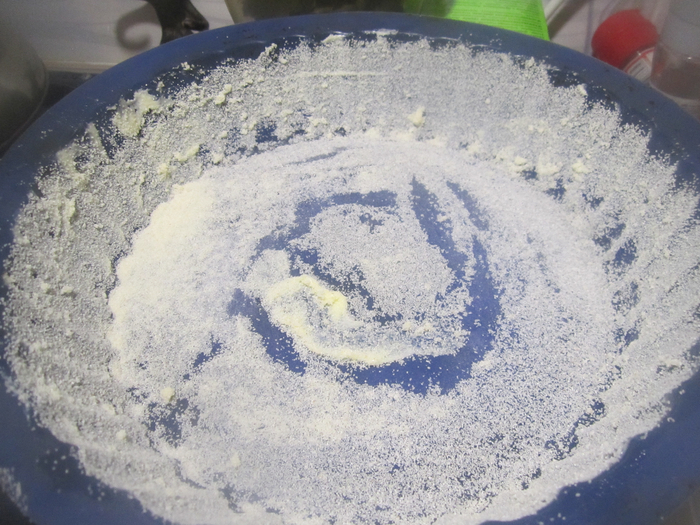 4. Pe o tavă de copt tapetată cu unt, turnăm uniform o treime din cantitatea de aluat.