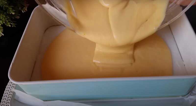 Se toarnă aluatul într-o tavă de copt și se pune la cuptorul preîncălzit pentru 30-35 de minute la 180 de grade.