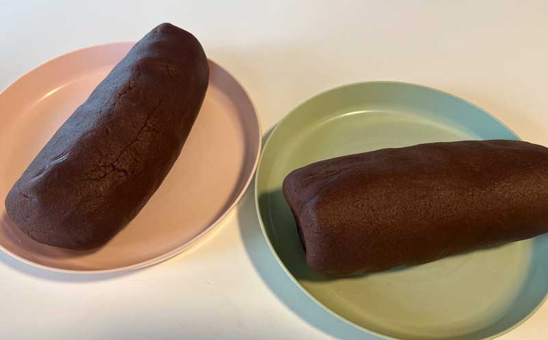 Împărțiți aluatul în două părți, înveliți-le în folie alimentară și puneți-le în congelator să se întărească.