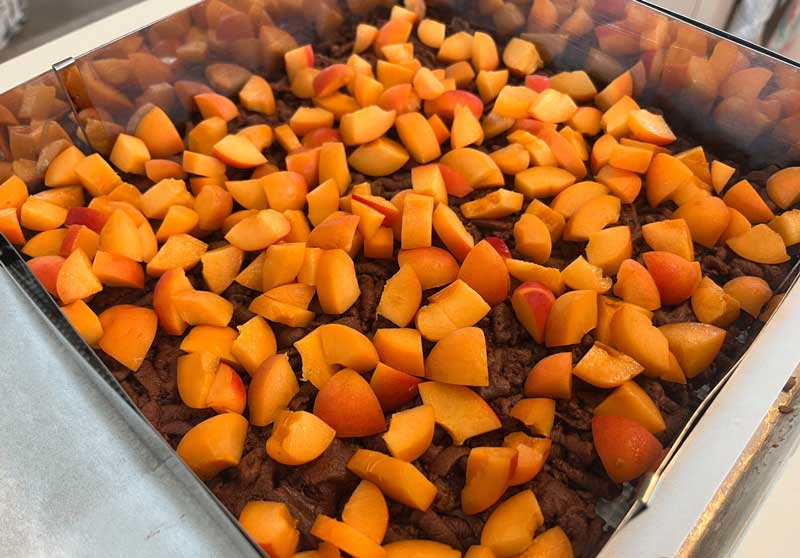 Această prăjitură poate părea complicată la prima vedere, dar este foarte gustoasă și se potrivește perfect pentru o varietate de ocazii. Am încercat-o cu caise și a fost fantastică.