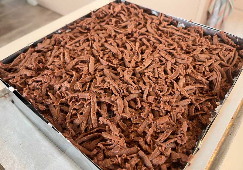 Vă recomand să o încercați și cu zmeură sau afine. Aluatul este ușor de manevrat, iar după congelare, se poate rade cu ușurință.